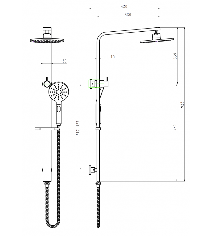 Brass Rail. Hoses Type: 1.5m 304SS Shower Hose. Colour: Brushed Gold