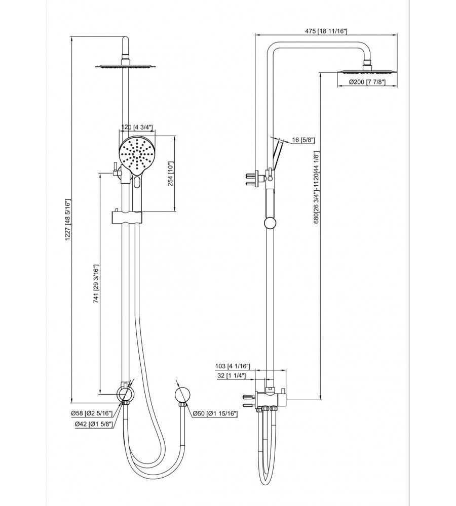 stainless 8” shower head. Hoses Type: 1.5m SS shower hose. Colour: Chrome