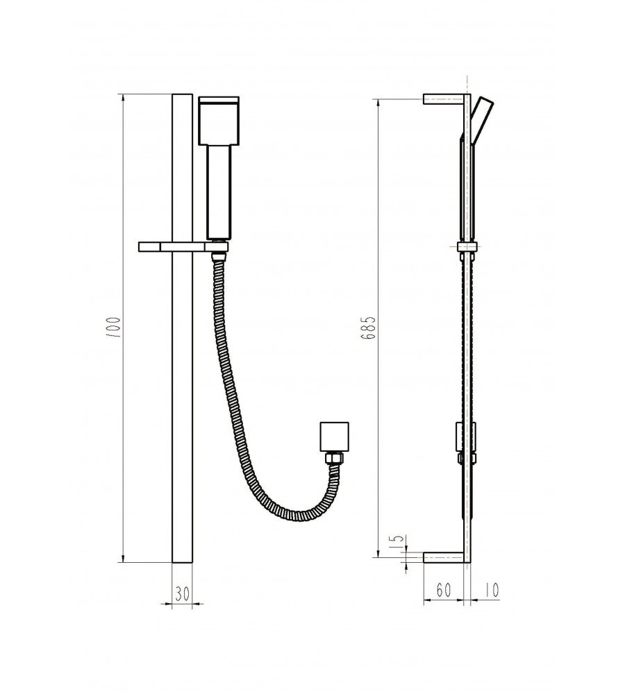 BRASS SLIDING RAIL. Hoses Type: 304SS, 1.2MM LENGTH. Colour: BRUSHED NICKEL