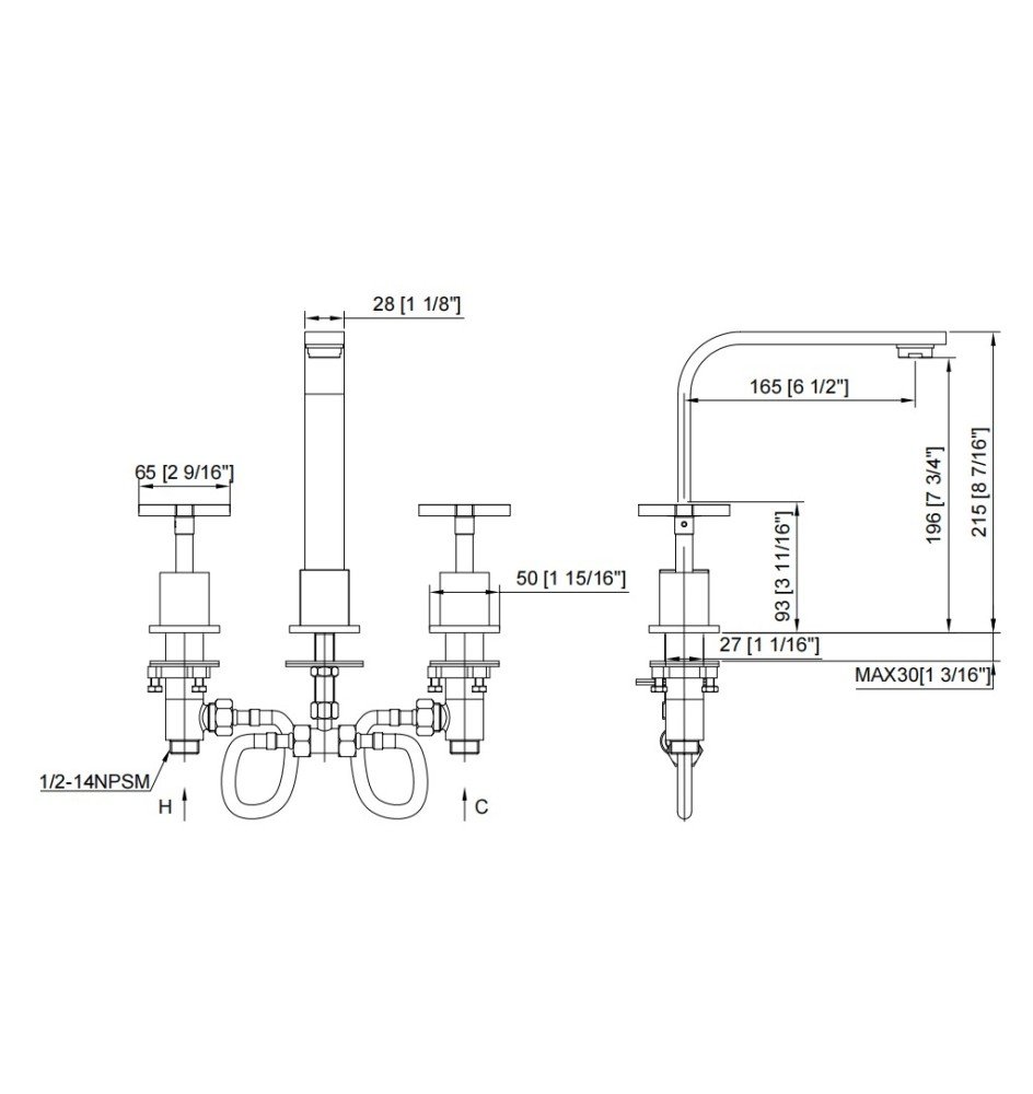 CHROME SQUARE BASIN TAP SET WITH SPOUT