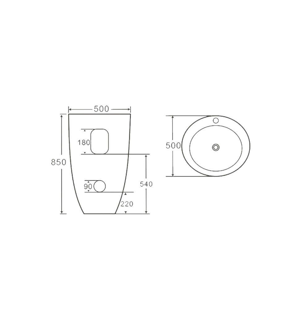 Colour: GLOSS WHITE. Size: 500X500X850MM. Material: CERAMIC