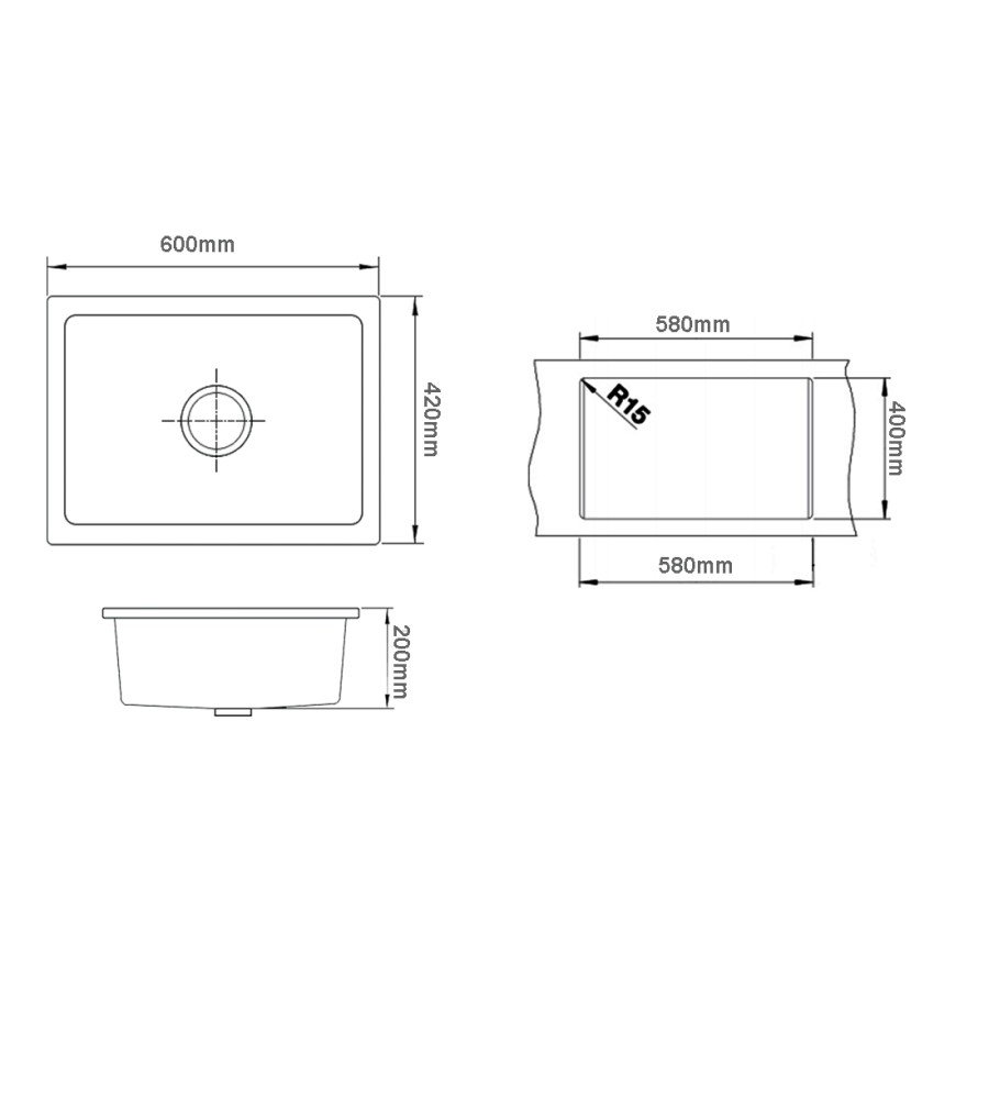Colour: Pearl Black. Size: 600x420x200mm. Material: Granite Quartz Stone