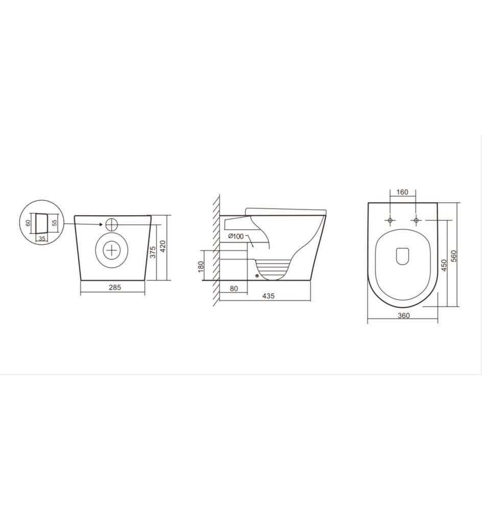 Size: 560X360X420MM. Seat: P-trap 180mm