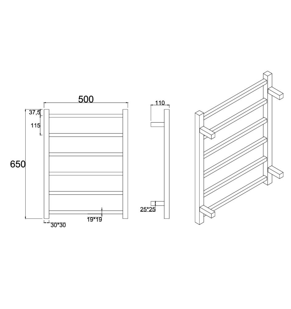 SQUARE Heated Towel Rail BRUSHED NICKEL
