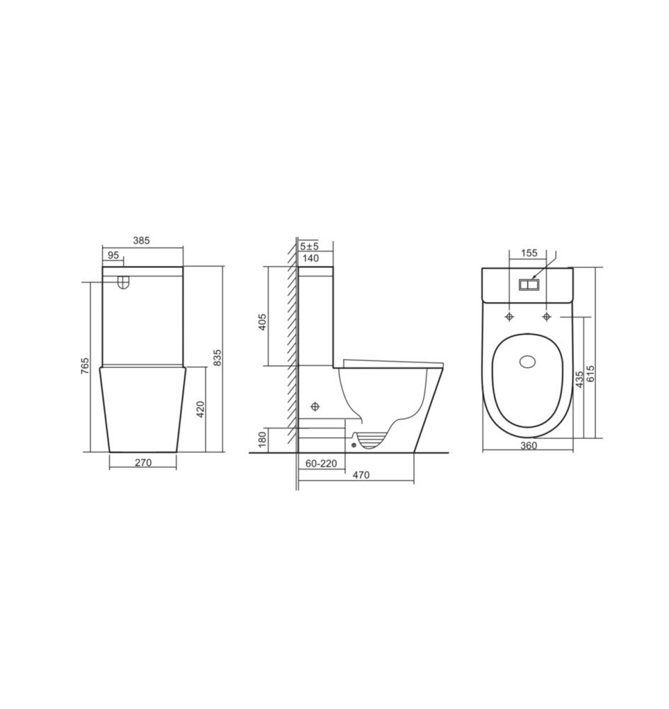 Size: 610x365x830mm. Flush: R&T dual flush. Seat: UF Soft close seat