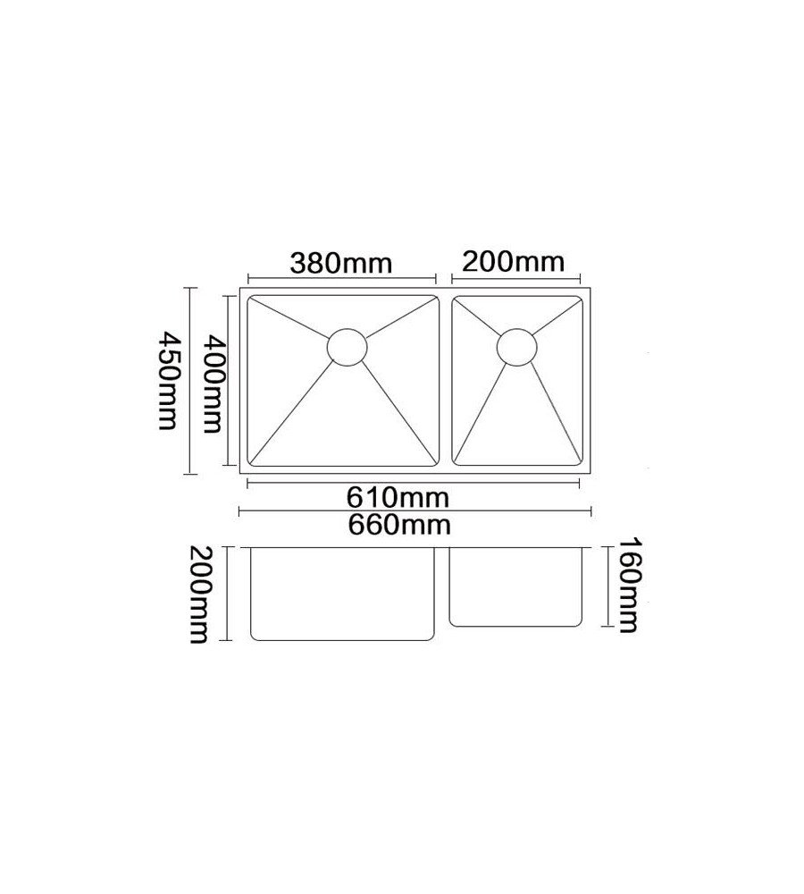 Body Type: Undermount 1&1/2 Bowl Sink. 304SS. Size: Size: 660*450*200mm. Thickness: satin finish, 1.2mm thickness