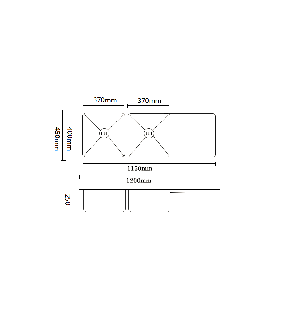 Body Type: 304SS, satin finish. Panel: 1.2mm thickness. Size: 1200*450*200mm