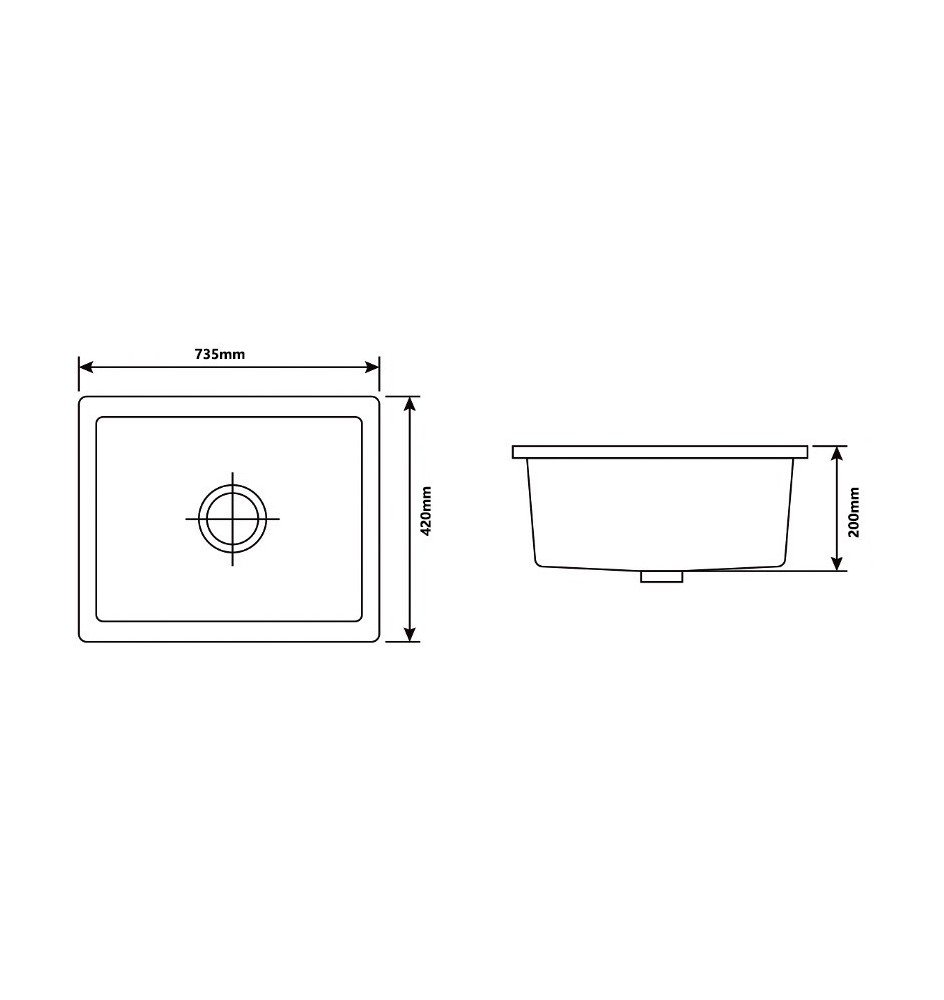 Colour: Pearl Black. Size: 735x420x200mm. Material: Granite Quartz Stone